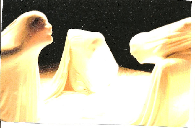 En plena oscuridad el elenco despliega una danza de brujas alrededor de la extraña disposicion de la sala.